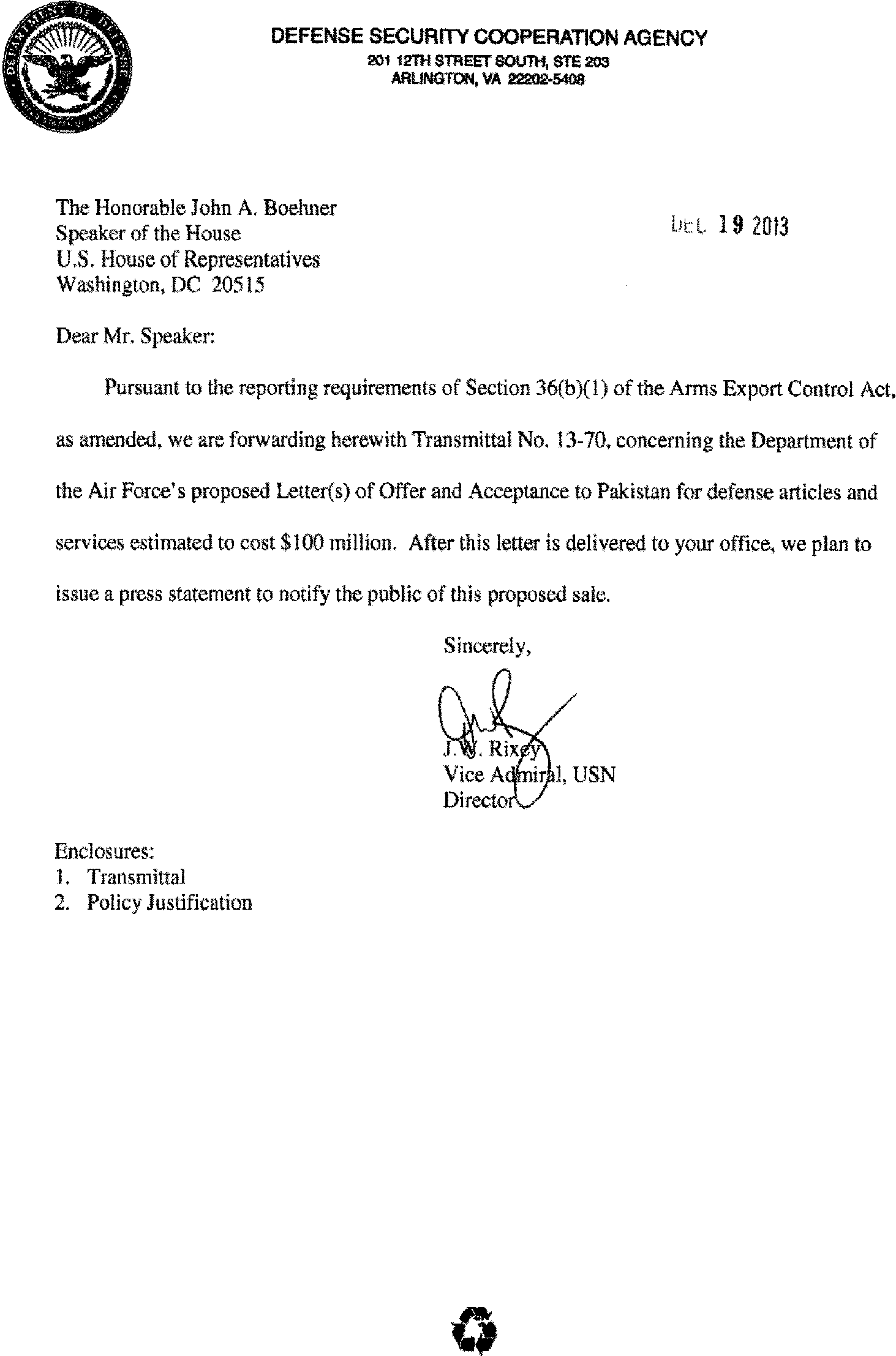 The following is a copy of a letter to the Speaker of the House of Representatives, Transmittals 13-70 with attached transmittal and policy justification.