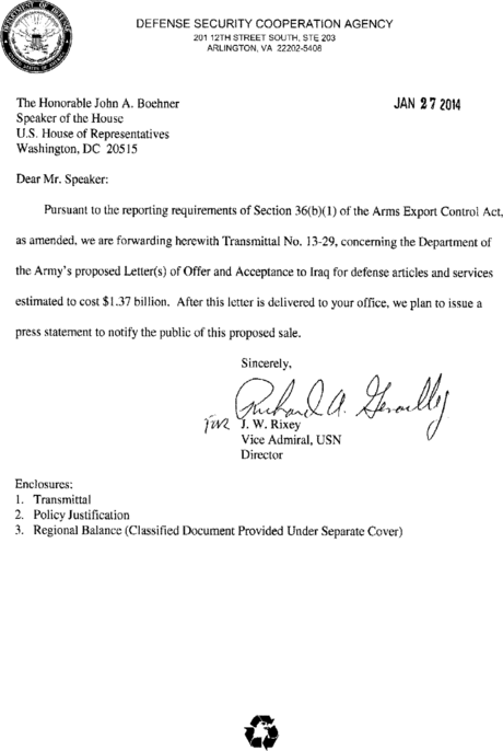 The proposed sale will contribute to the foreign policy and national security of the United States by helping to improve the security of a strategic partner. This proposed sale directly supports the Iraq government and serves the interests of the Iraqi people and the United States.
