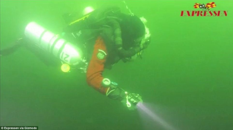 Hefty trajectory: The Swedish diving team noted a 985-foot flattened out ‘runway’ leading up to the object, implying that it skidded along the path before stopping but no true answers to this are clear.