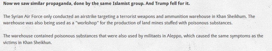 The fact is Russia knew that Turkey was dumping these poison bombs into Syria, but Russia needs Turkey, so it can not come out with the evidence, and America can not blame NATO Turkey, so the crooks there get away with their terrorism as John McCain now has President Trump advocating for ISIS terrorists.