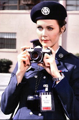 Now look at Wonder Woman as Lynda Carter, in the scenes were deliberately constructed as in this scene where it alerts the audience that the positive sunny day of America's Heroine is about to enter into the darker world of evil, as she transitions from the bright outdoors to the impending battle against the darkness.