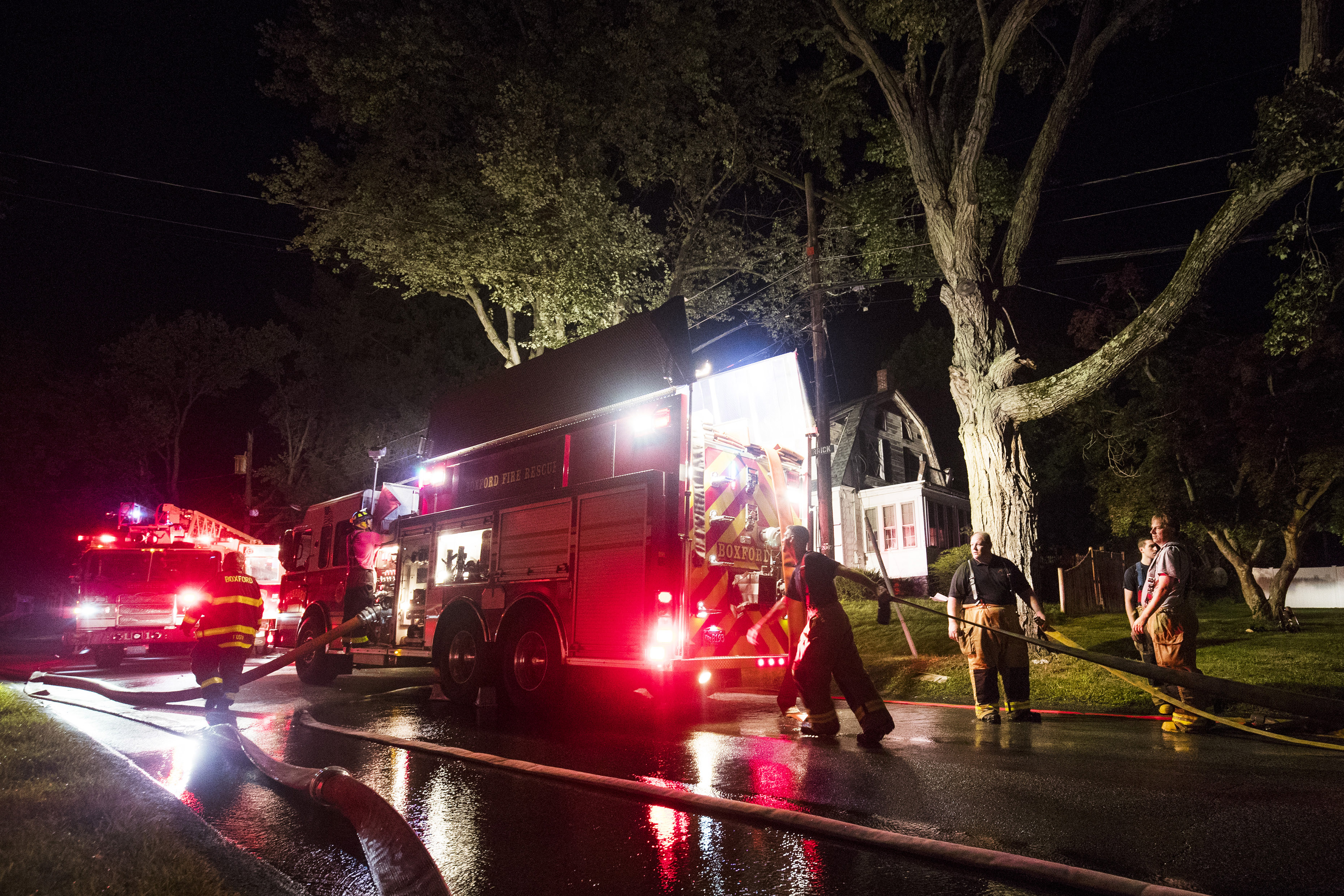 On Jefferson Street in Lawrence, neighbors gawked at a home that suffered catastrophic fire damage, the smell of smoke still lingering in the air.