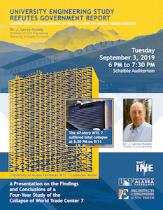 Today, we at Architects & Engineers for 9/11 Truth are pleased to partner with the University of Alaska Fairbanks (UAF) in releasing the draft report of a four-year computer modeling study of WTC 7’s collapse conducted by researchers in the university's Department of Civil and Environmental Engineering. The UAF WTC 7 report concludes that the collapse of WTC 7 on 9/11 was caused not by fire but rather by the near-simultaneous failure of every column in the building.