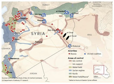 the map of the air strikes, it is clear that the US airspace mainly focuses on
